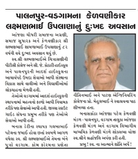 બનાસ ડેરીના આધ્યસ્થાપક ગલબાકાકા ના વચેટ જમાઈ લક્ષ્મણભાઈ ઉપલાણા અંતિમ યાત્રા પર સિધાવ્યા છે. ભગવાન એમની આત્માને શાંતિ અર્પે અને પરિવારજનોને આ દુખ સહન કરવાની શક્તિ આપે.